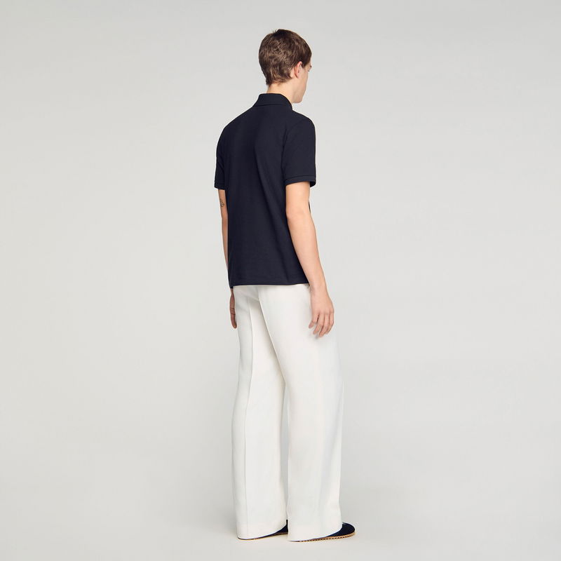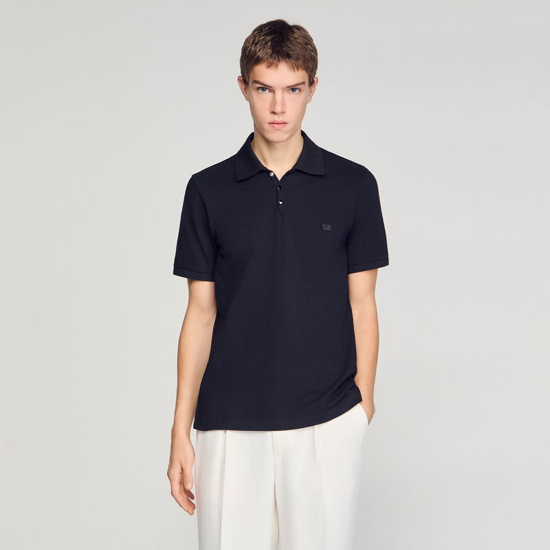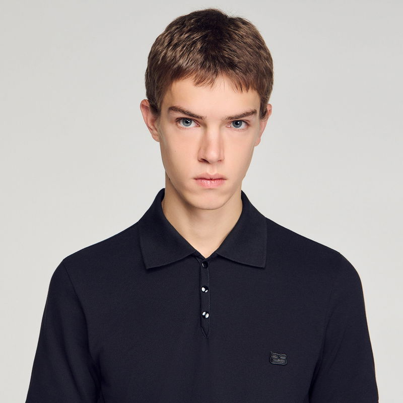 Piqué cotton polo shirt with button-down polo collar, short sleeves and tone-on-tone double S patch on the chest.