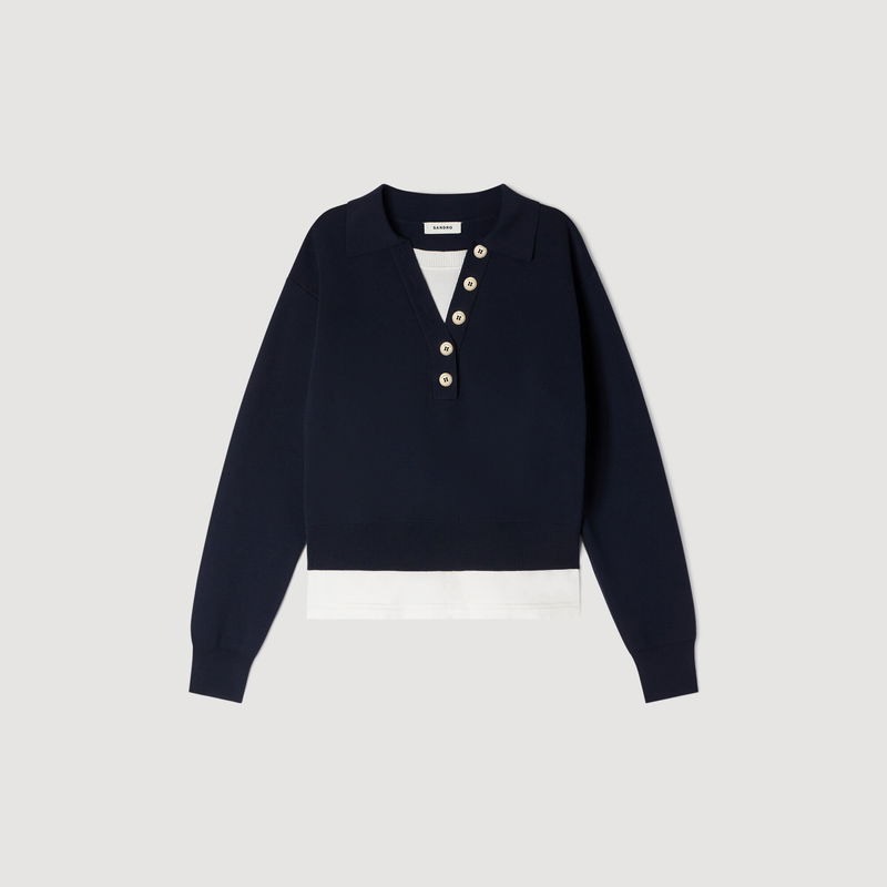 Metal Button Layered Collar Jumper