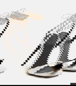 Sandals, Metallic, Cracked-leather, Open square toe, Elasticated slingback strap, Leather sole.