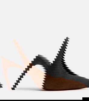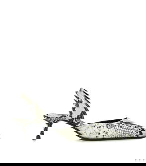 Pumps, Metallic, Snake-effect leather, Pointed toe, Elasticated slingback strap, Leather sole.