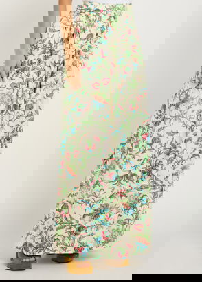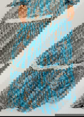 Maxi skirt with rhinestone embellished knit, with a flounce at the bottom and a slit at the back.