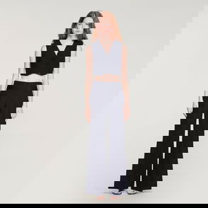 Sleeveless satin-effect crop top with epaulettes and plunging V-neck embellished with an oversized bow.