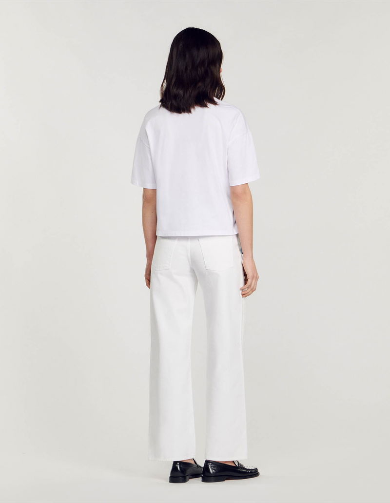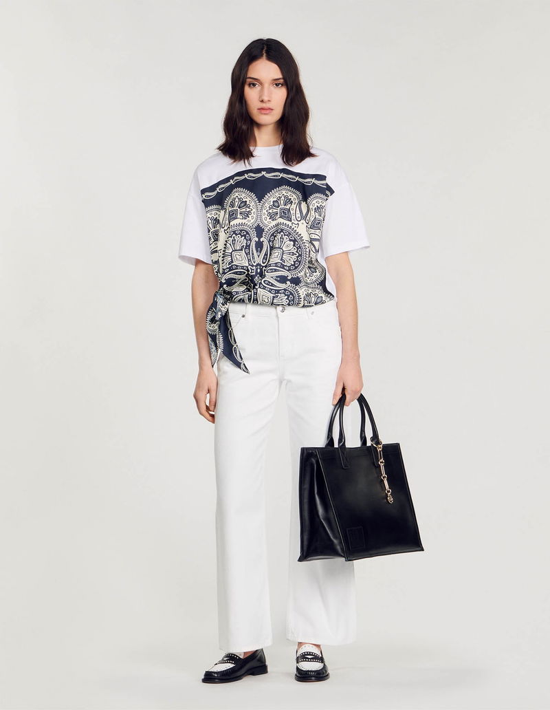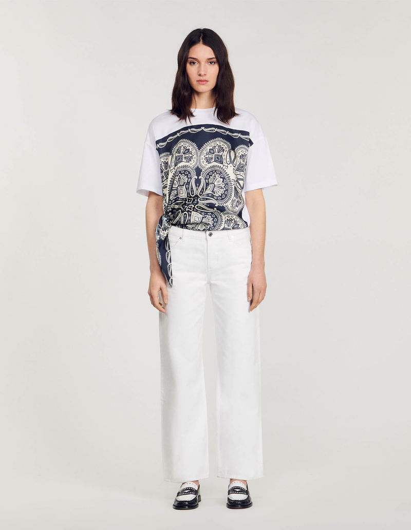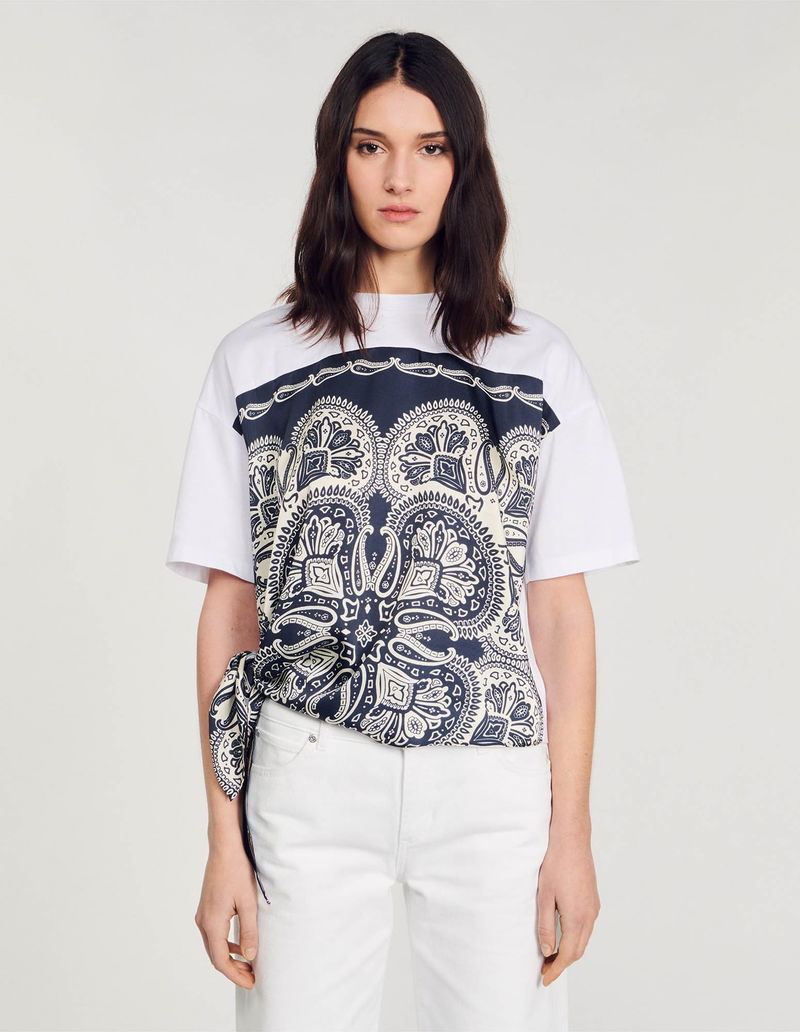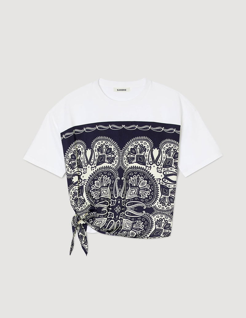 Cotton T-shirt with round neck and short sleeves, embellished with a bandana-print halterneck panel that ties at the side.