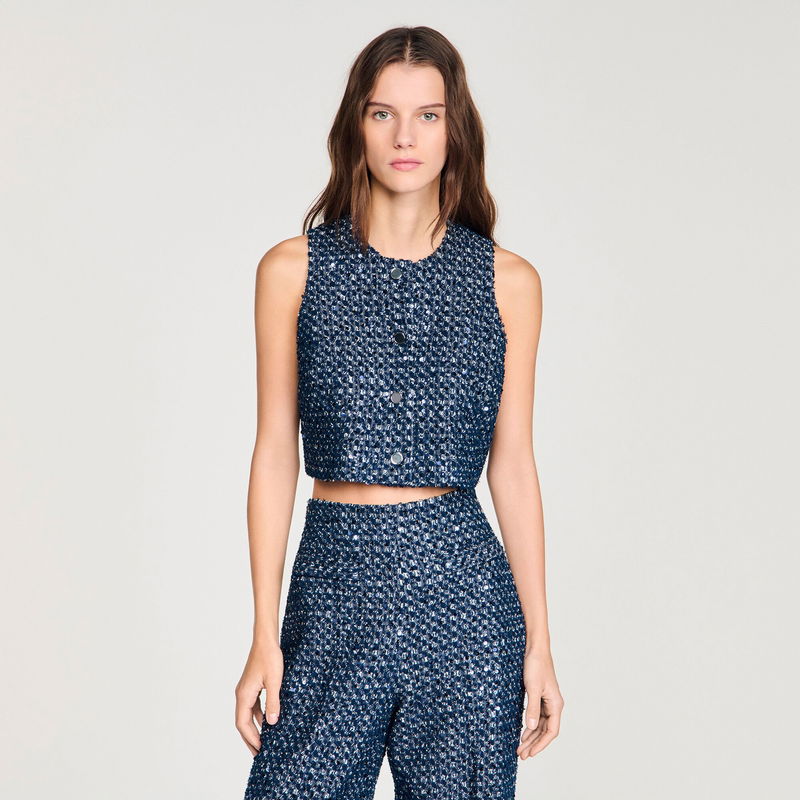 Shop More: Navy Clothing SANDRO Clothing SANDRO Tops Navy Tops SANDRO Navy Clothing SANDRO Navy Tops