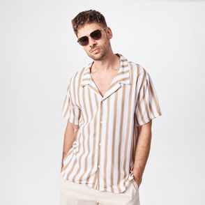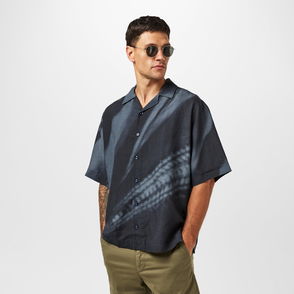 Short-sleeved shirt with shark collar and button fastening, embellished with a cross motif.