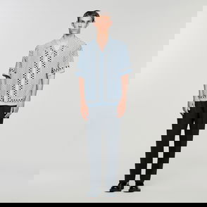Flowing shirt with a square cross motif, featuring a shark collar, short sleeves and button fastening.