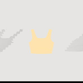 Sleeveless striped crop top with V-neck, ruffles and laces that tie at the front.