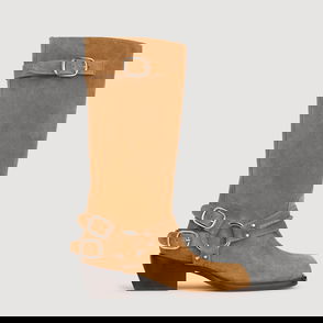 Cowboy boots, Suede, Pull tabs, Elasticated inserts, Stacked heel, Pointed toe, Pull on, Leather sole.