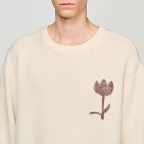 Rice-stitch textured knit jumper with round neck and long sleeves.