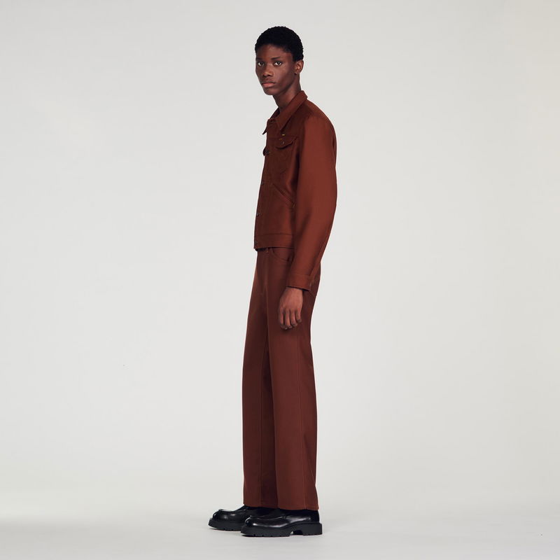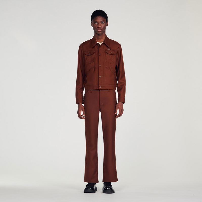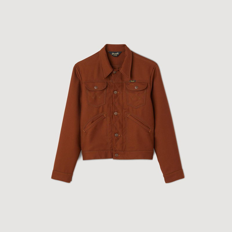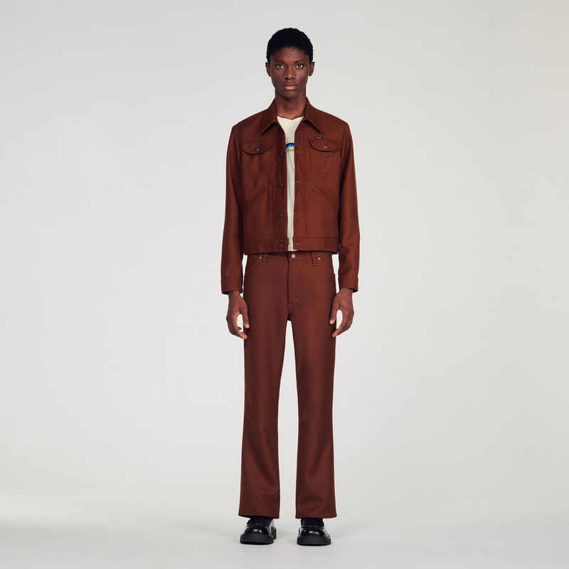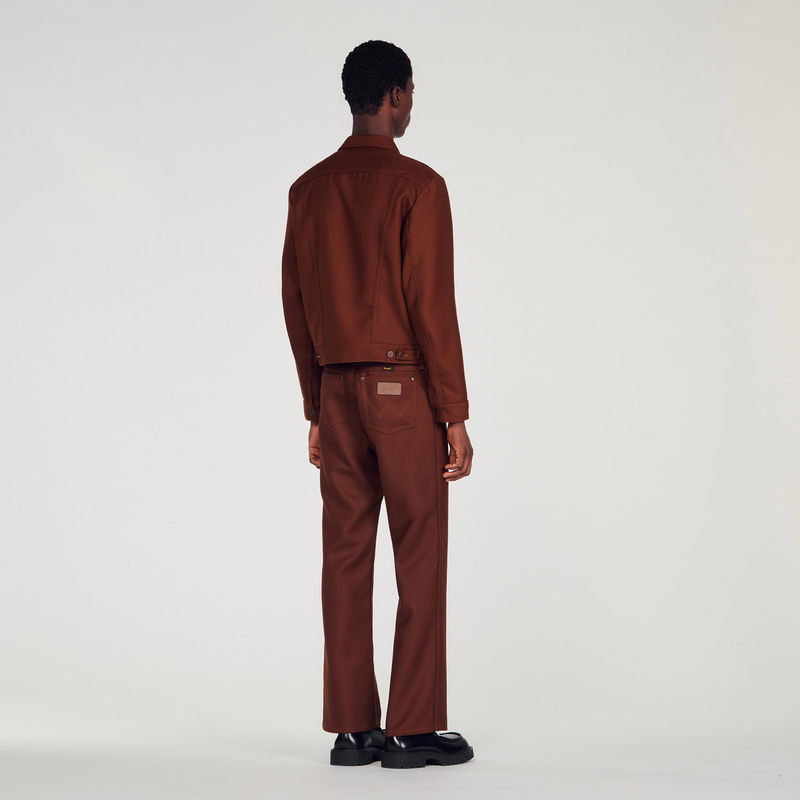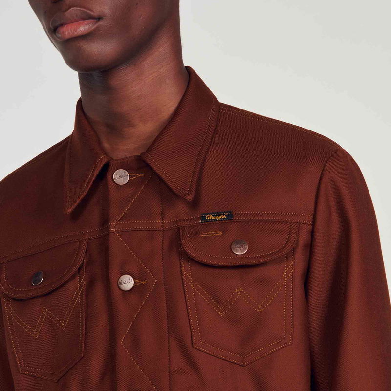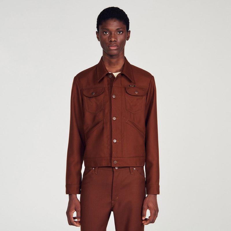 Designed by the SANDRO Men's design studio, the capsule collection designed with WRANGLER is versatile for both men and women. Inspired by the iconic westerns of the late '60s, SANDRO's creative teams wanted to celebrate WRANGLER's heritage and unique aesthetic by reinterpreting archive pieces from the '70s. Wool-blend jacket featuring long sleeves with buttoned cuffs, buttons down the front, front and chest pockets and a back placket.