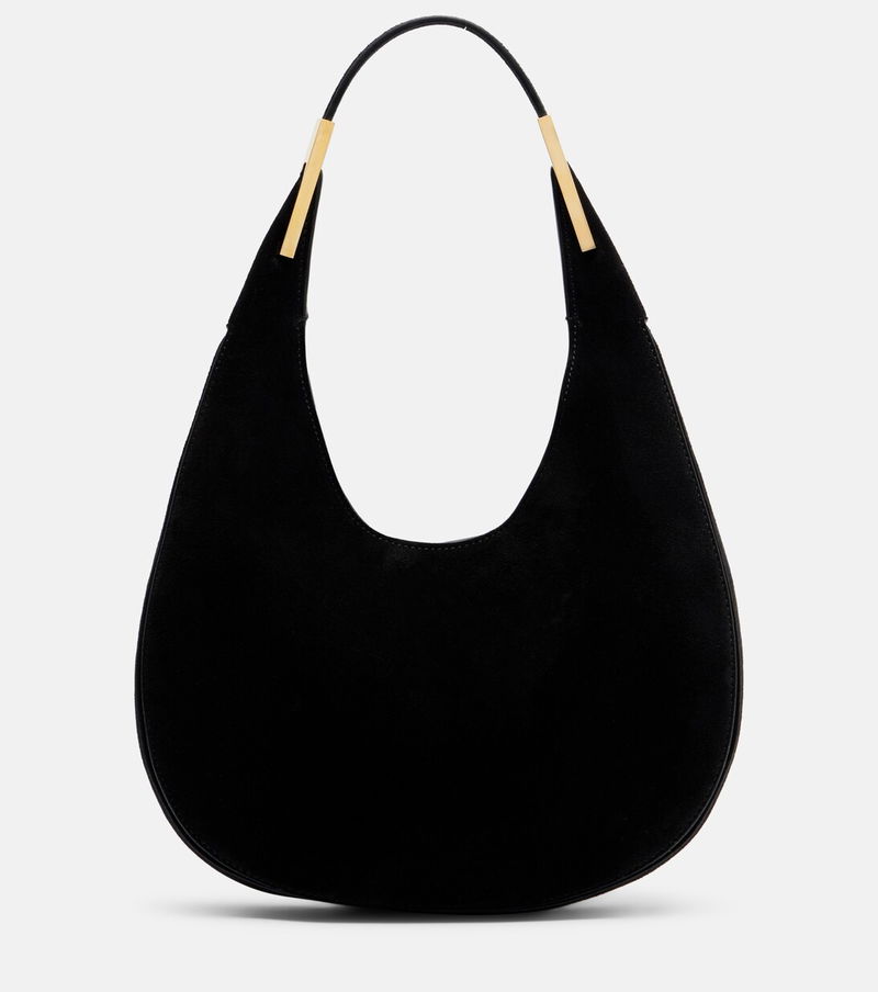 The Florence shoulder bag from Savette showcases the brand's affinity for timeless craftsmanship. Carefully made from black suede, this Small style comes in a curved silhouette accented by gold-toned hardware and features an internal slot pocket.
