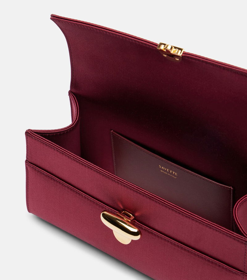 Savette brings sophistication to everyday looks with elegant geometric forms. The Symmetry clutch is crafted from smooth satin and is finished with the signature turn-lock closure and a refined top handle.