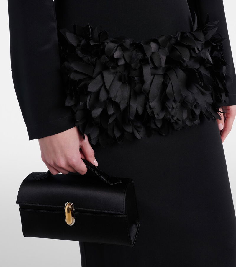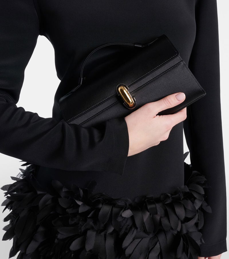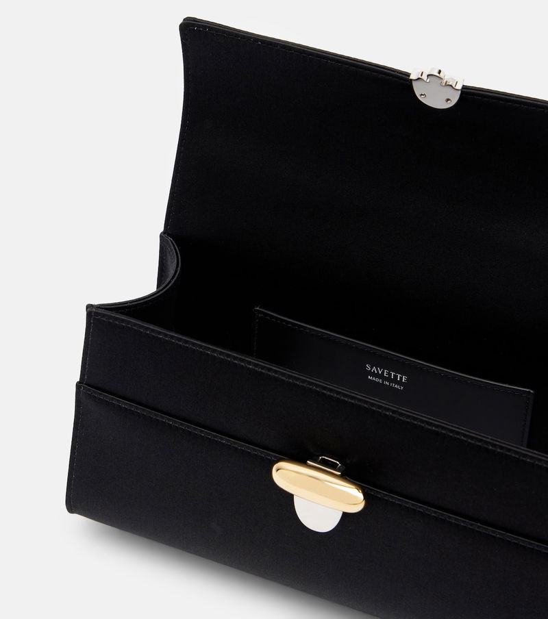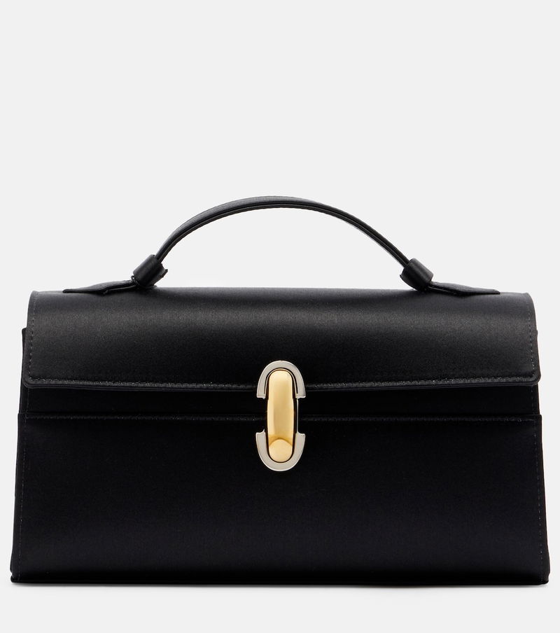 Savette redefines everyday sophistication through meticulously crafted silhouettes and fine materials. The Symmetry Small top-handle bag is crafted from lustrous satin and is defined by its structured silhouette and signature turn-lock front fastening.