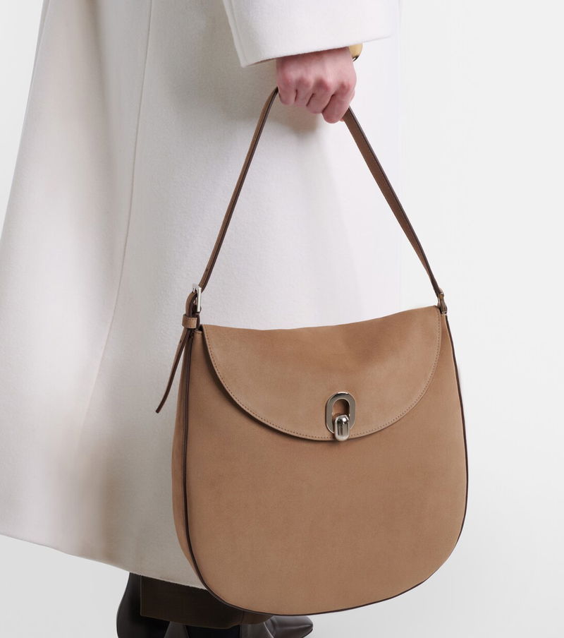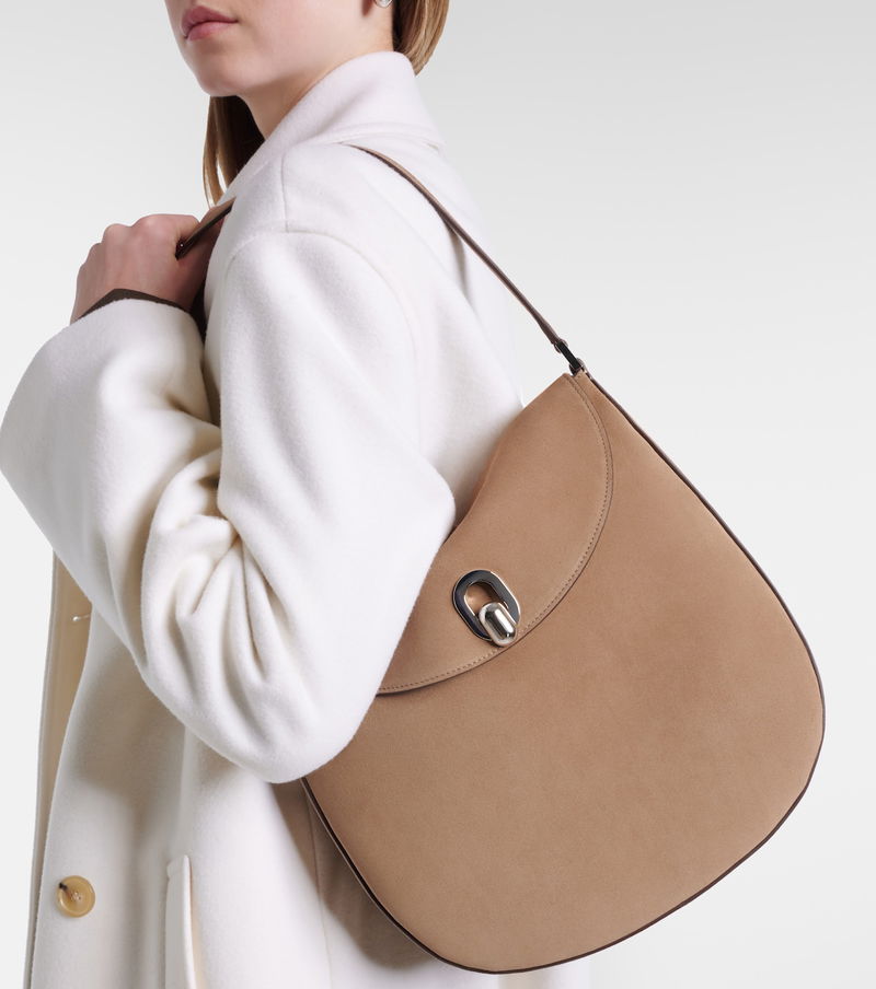 Merging classic leatherwork with contemporary refinement, Savette crafts structured handbags that embody quiet luxury and sophistication. Crafted in Italy, the Tondo Large suede shoulder bag features a magnetic lock, an adjustable shoulder strap, and a single interior pocket.