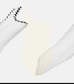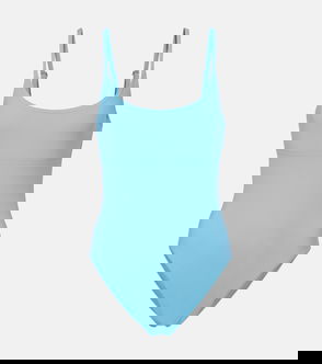 Scoop-neck green swimsuit.