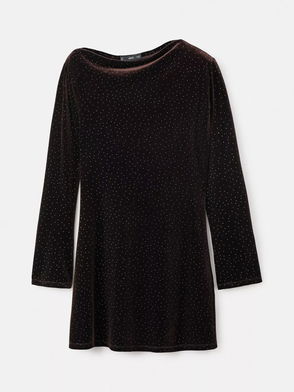 The asymmetric peplum-style hem is an eye-catching element on this paisley print long sleeve dress for women. Cut in an elegant mid length it has a round neck and waist defining detail.