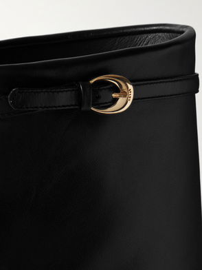 Crafted with smooth Polido leather with a polished finish, these long boots for women feature a western-inspired silhouette with a pointed toe and slightly slanted stacked heel that's set at the perfect height for everyday wear. Featuring stitched detailing on the leg and a side zip.