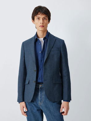 Made with supple, stretch cotton and fully lined, this single-breasted blazer for men features double front pockets and an elegant welted chest pocket. Designed with an all-over striped pattern.