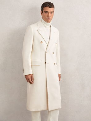 Combine classic with on-trend with this wool-blend double-breasted overcoat. Crafted with reused fibre, this bouclé overcoat will keep you warm while adding some much-needed colour to the street scene in the months to come.