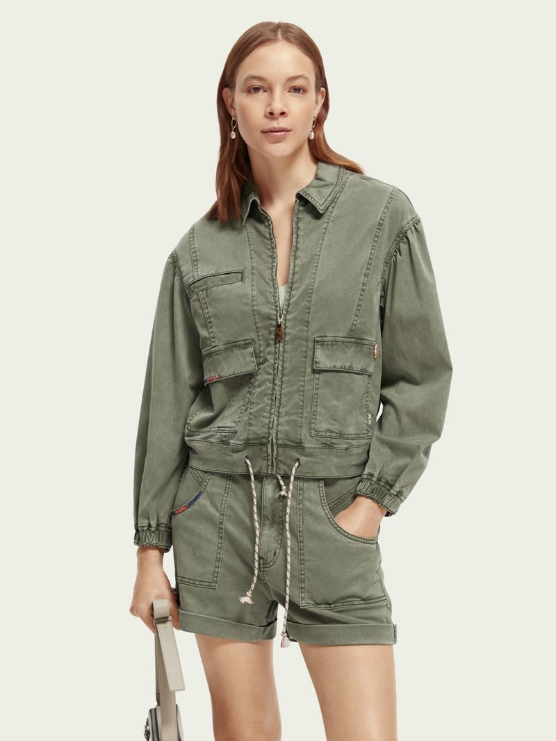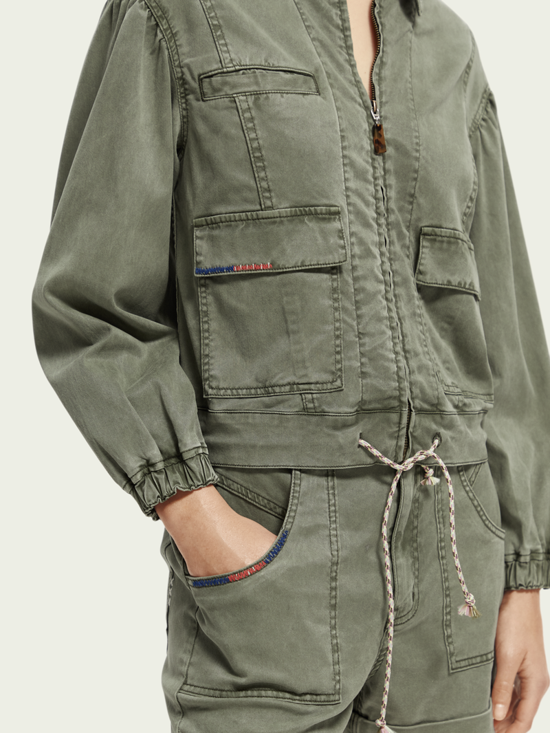 Scotch and Soda’s latest utility jacket comes with a classic flight-style aesthetic. Featuring structured stitching detailing on the body, the brand added cinched, fitted cuffs and a drawstring at the waist for a polished finish on this trendy look.