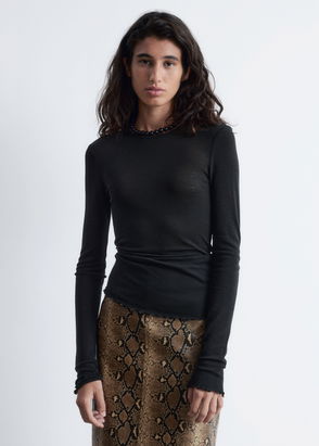 With its elegant drape pleating detail on the shoulders and cuffs and a collarless round neck this long sleeve shirt for women is a clean-lined piece that compliments any modern wardrobe.