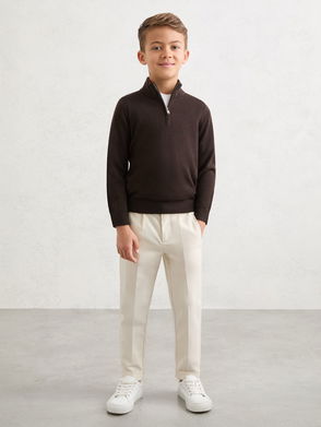 Time to fill your closet with some cool winter items. Scotch and Soda's new ecru melange turtleneck will be a perfect add due to its half up zip-closure and salient seam details.