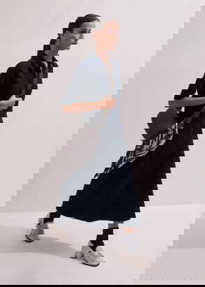 Made with a gorgeous cotton blend with an elegant drape this midi-dress for women features rolled sleeves and a jacquard pattern.
