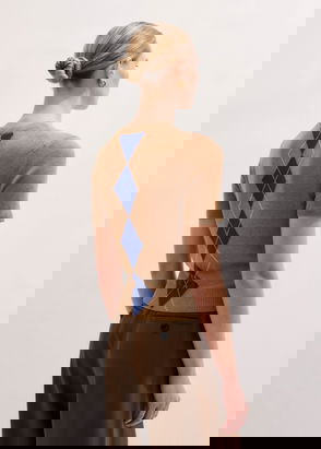 Scotch and Soda revamped the classic spencer with a diamond knit and straps on either side of the waist. The ribbed neckline and cotton fabric finishing this piece off perfectly.