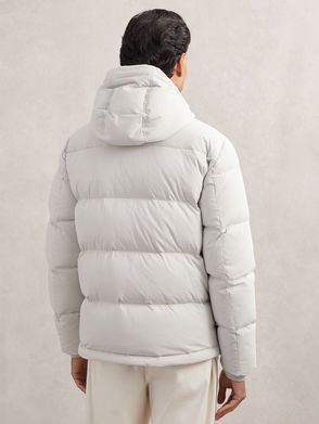 Elevated style with a conscience. This chic puffer jacket for men is cut in a longer length and features a belted silhouette and removable hood. Made with a recycled polyester filling from REPREVE®.