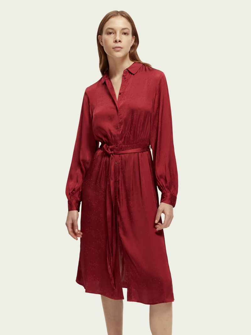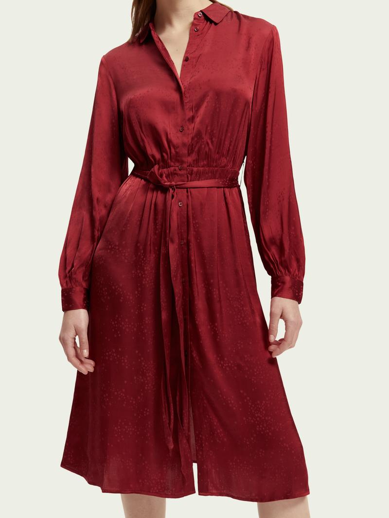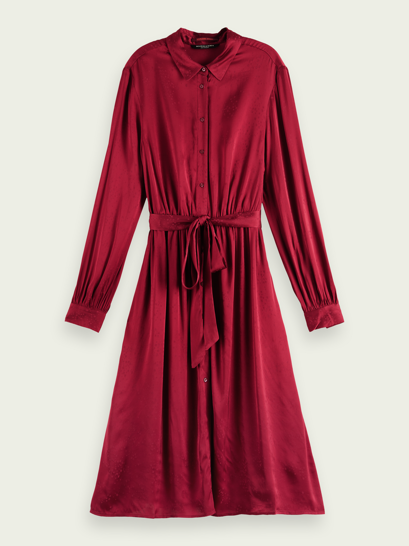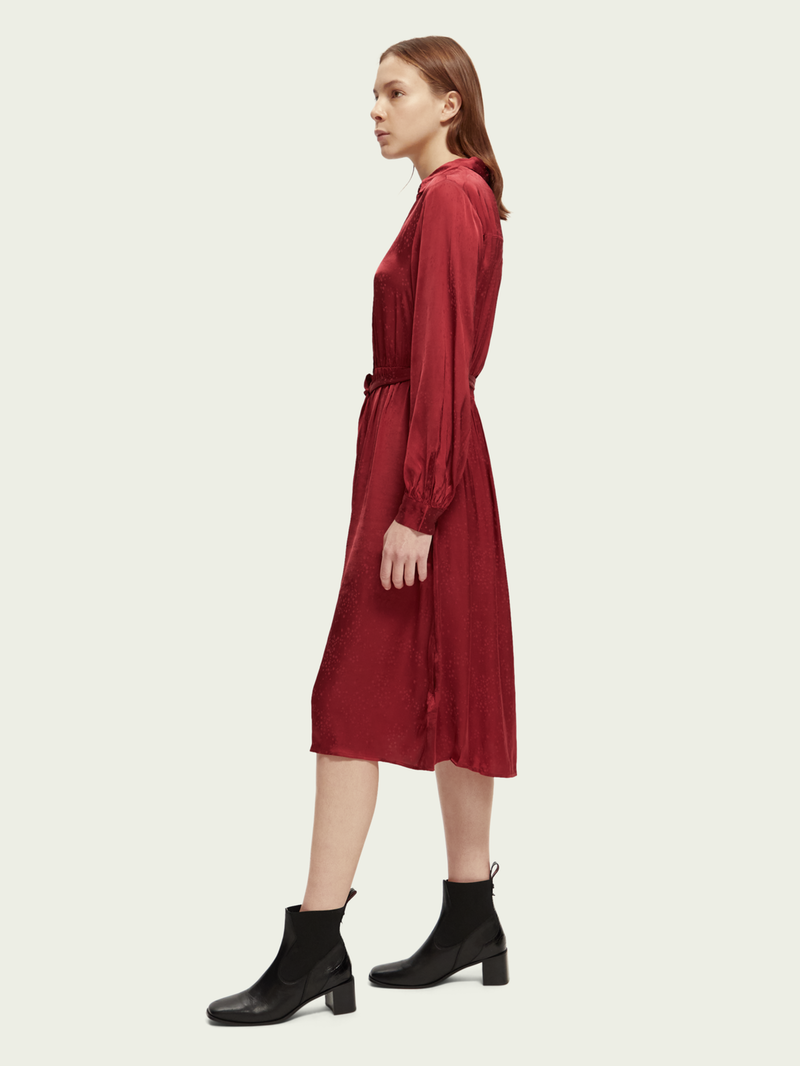 Made of a lightweight material, this dress has long sleeves and a half-length button closure. Finished with a bow at the waist - this style is perfect for any occasion.
