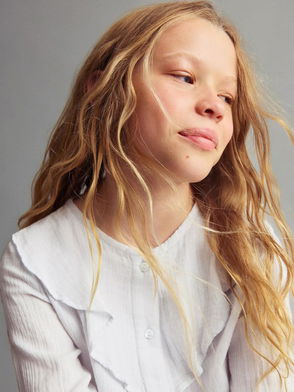 Get dressy occasion ready with Scotch and Soda's crisp organic cotton top for girls. The floaty balloon sleeved top was cut from crisp organic cotton and has a playful ruffled yoke.