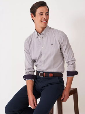 A slim fit and a polished cut elevate our premium cotton button-down from average to refined. A subtle indigo check makes it versatile while the rounded hem is casual when worn untucked.
