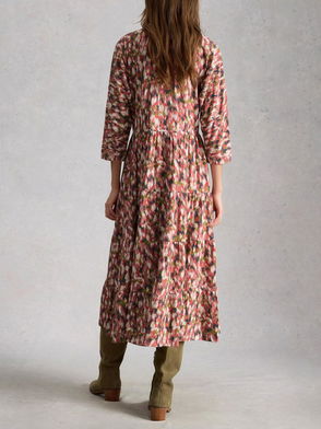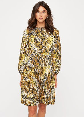 With its semi-sheer fabric and button-down design, this shirt dress is the ultimate statement piece. The outspoken print that features clouds and botanicals gives this piece an artistic edge.