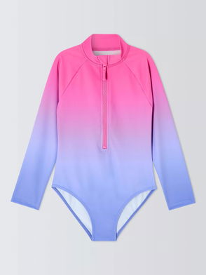 Protect your mini from harmful UV rays with a bit of ruffled flower power. The long-sleeved swimsuit has a fun floral print and blue contrast stitching. Finished with a mock neck for all-round sun protection - off on the floaty they go.