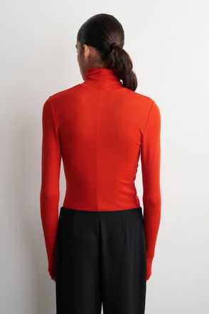 With its minimal design and subtle detailing, this wrap top has a quiet charm to it. Its curled hem and cuffs add character to the design, whilst the slim fit, ribbed fabric, and beautiful neckline complete the look perfectly.