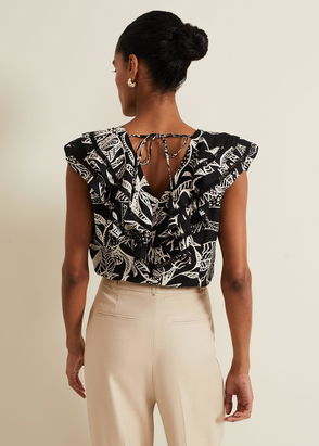By adding ruffles along the neck and elongating the cuffs of our long-sleeved T-shirt, we’ve given a cotton basic a special twist. Finished with ruffle detail around the neck and an easy loose fit.