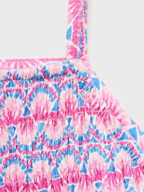 Sometimes more is more. That's why this pink top is fitted with both ruffles and side bows. Combine this one with black shades and a white skirt for an ultra-cool, stylish look. Getting dressed was never this fun.
