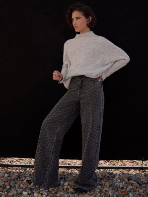Made from black comfort stretch fabric, these jeans feature a white weft yarn that keeps that summer vibe alive all year. This high-waist, kick-flare denim is washed to tell a visual story through its subtle details.