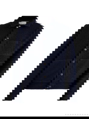 Boiled wool blend trucker jacket for men, crafted with double chest pockets, a button up closure and branded label detail on the chest.