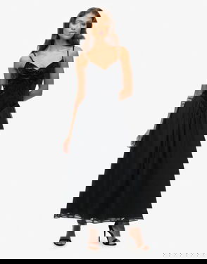 Endlessly romantic details are always at the heart of Sea's collections. This 'Alice' dress has a delicate embroidered lace bodice with lightly puffed sleeves and cinches at the waist before falling to a plush velvet skirt. The classic black shade adds a beautifully gothic edge.