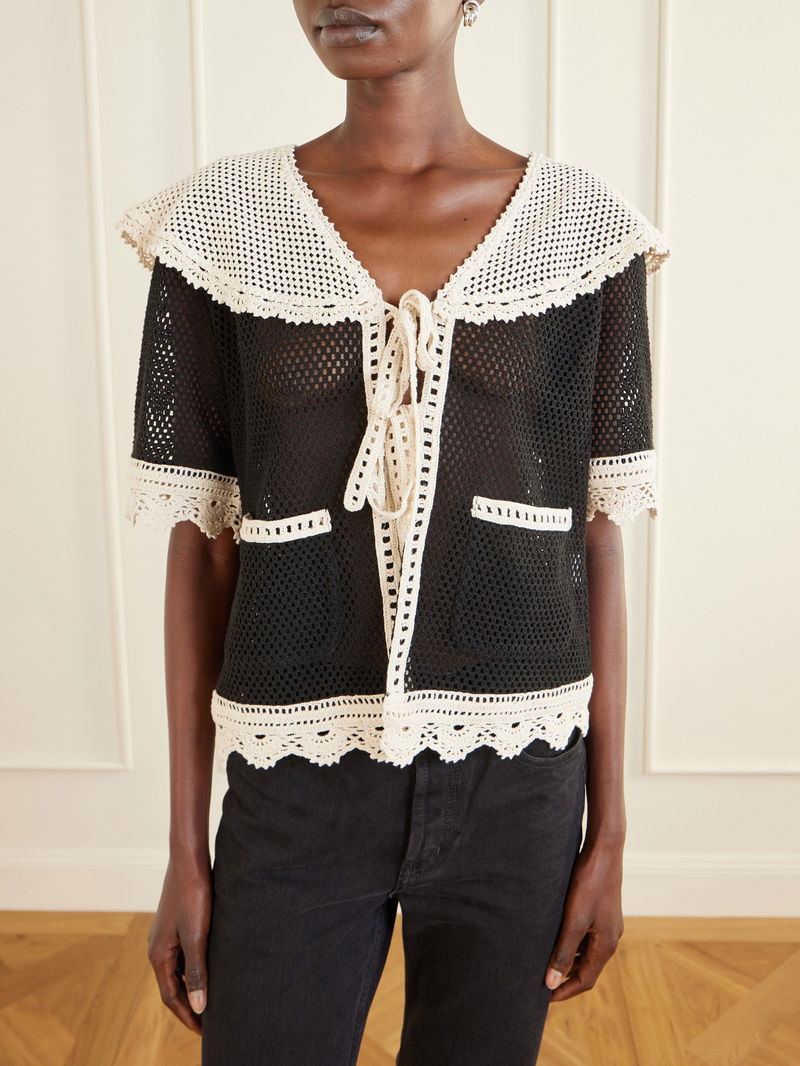 Sea infuses every garment with its signature blend of charm and vintage flair. Crocheted from cotton in a breezy, open construction, this scalloped 'Kendall' blouse is framed with a wide collar and has a tie-detailed front. Underpin yours with a tonal camisole for coverage.