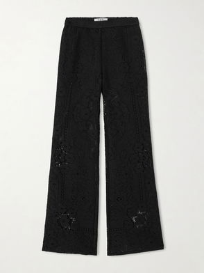 Wide-leg cotton twill trousers.· Belt loops at partially elasticized waistband · Three-pocket styling · Zip-fly.