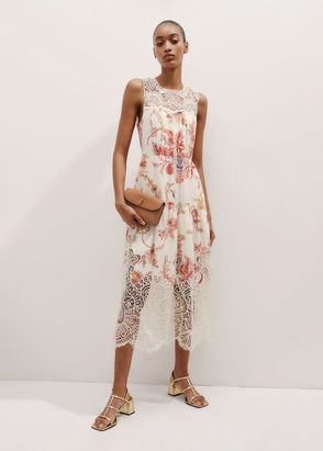 Sea has a charming, delicate sense of style and this 'Kit' dress reflects that. It's made from airy cotton and linen-blend, which is embroidered and trimmed with scalloped crochet and tasseled ties.