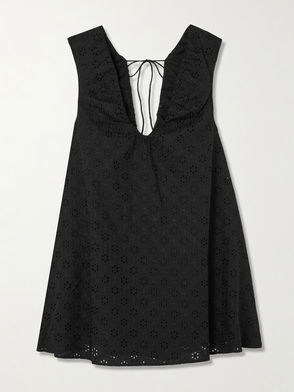 The detachable collar accompanying this black Loretta dress is a symbol of Sea's partnering of artisanal craftsmanship with a bygone-era aesthetic. It's made from panelled leather with a slim bodice framed with balloon sleeves and shirred cuffs, then lined with satin.