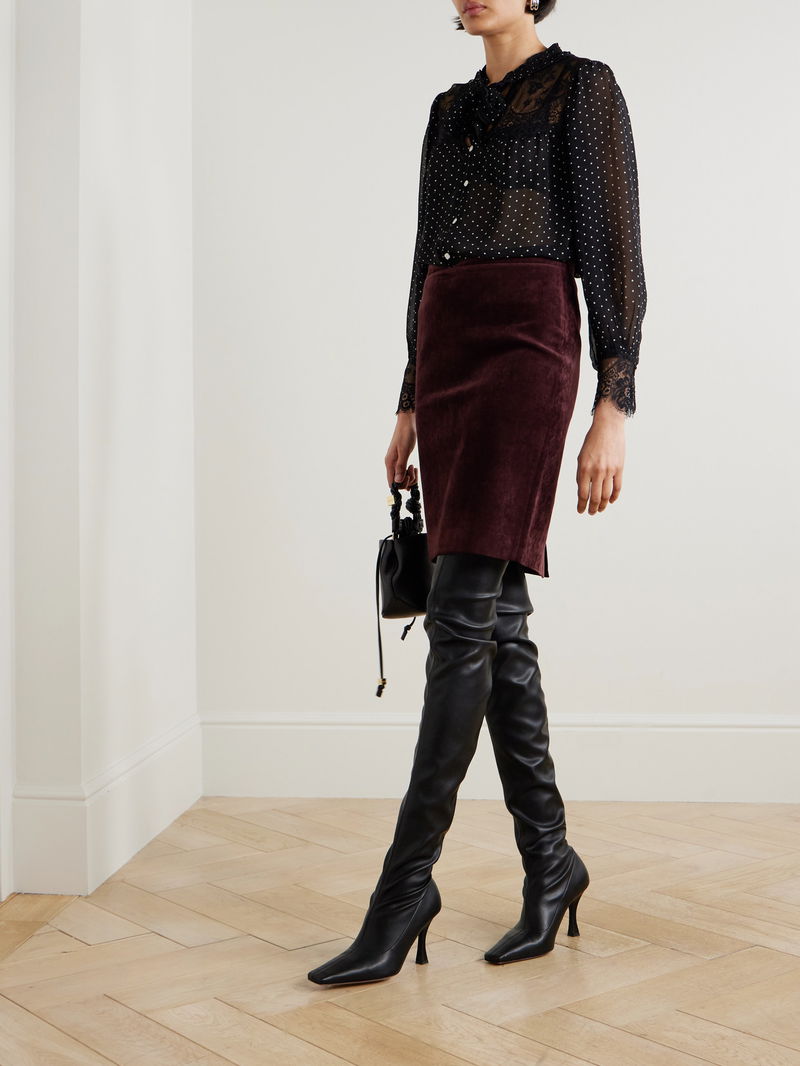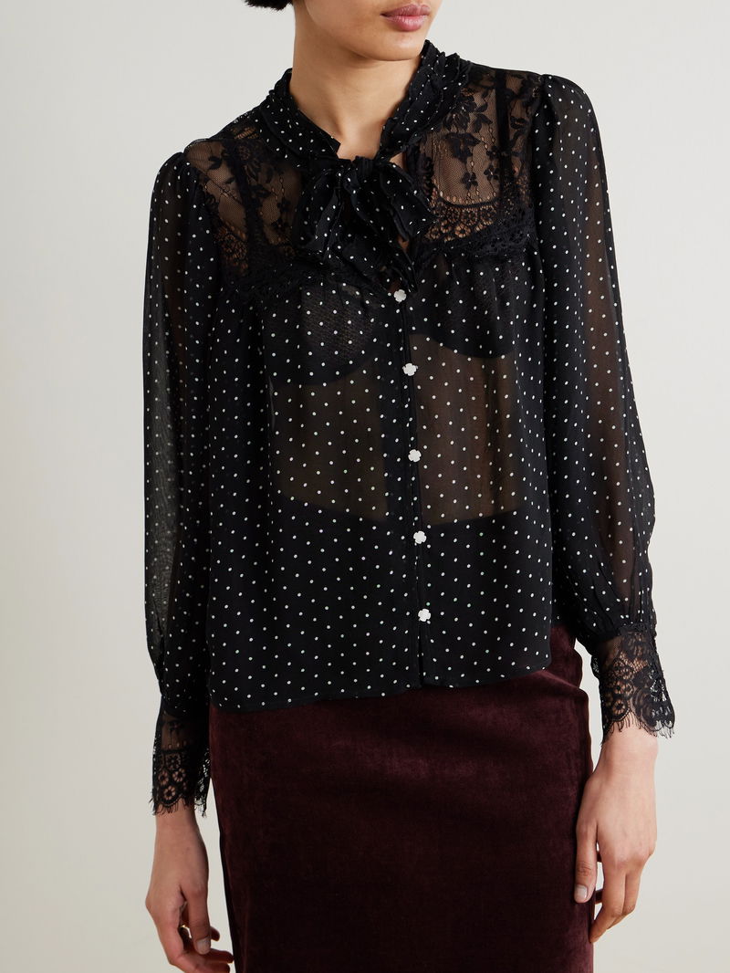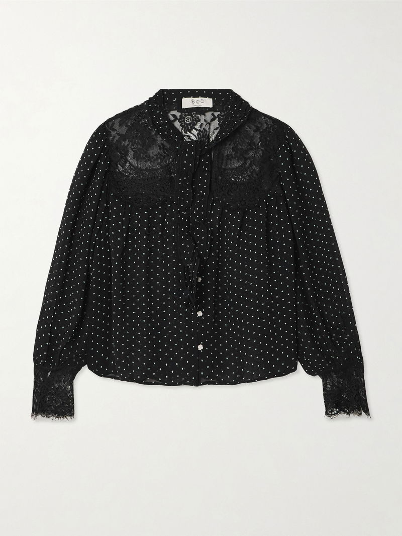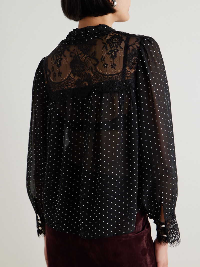 Sea's feminine pieces are renowned for their romantic details. Cut from polka-dot crepe de chine, this 'Melody' shirt is trimmed with intricate lace and has ruffles along the neckline. Temper the sheer finish with a tonal camisole.