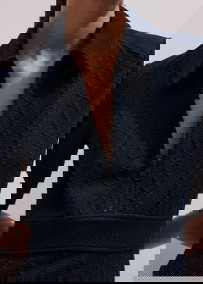 Sea's 'Saige' midi dress is jacquard-knitted with monochrome checks. It's detailed with a classic polo collar and ruffles along the cuffs and hem.