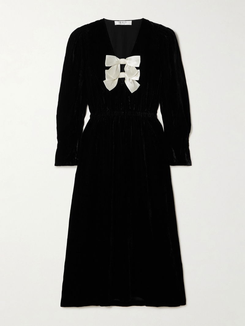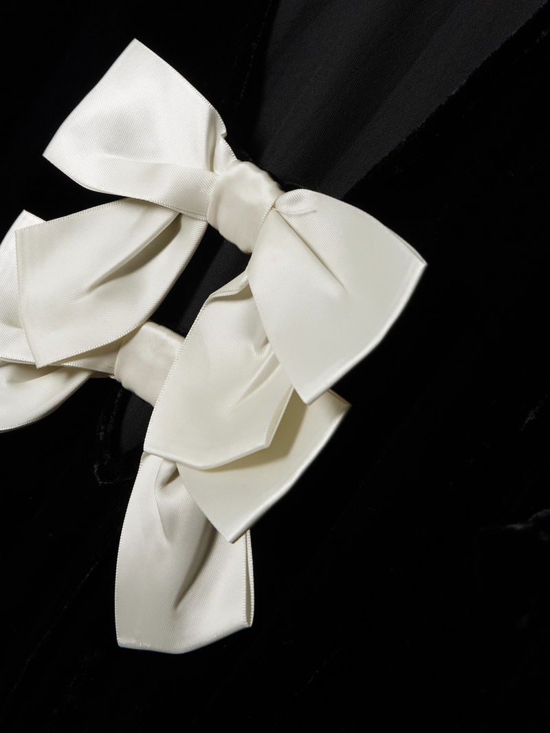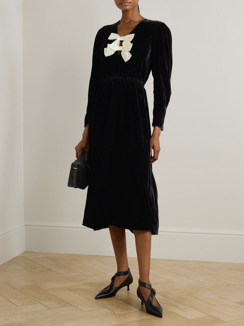 A gorgeous addition to your occasion wardrobe, Sea's 'Seraphine' dress has a plunging neckline adorned with two satin bows. It's made from velvet with voluminous sleeves and gathered at the waist to define your figure. Wear yours with brogues and socks or Mary Jane pumps.