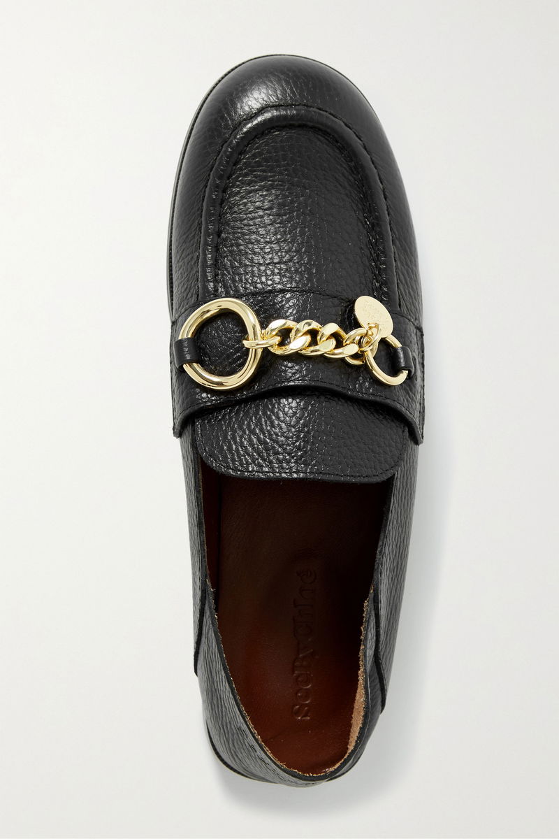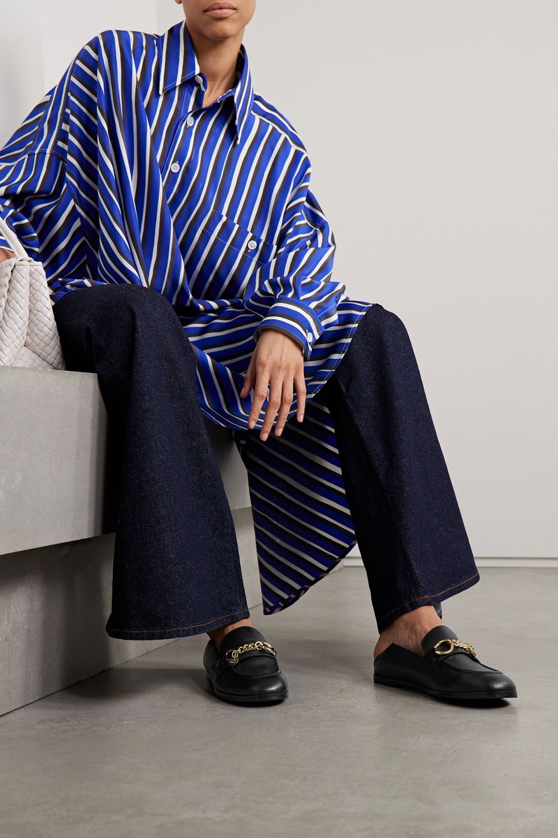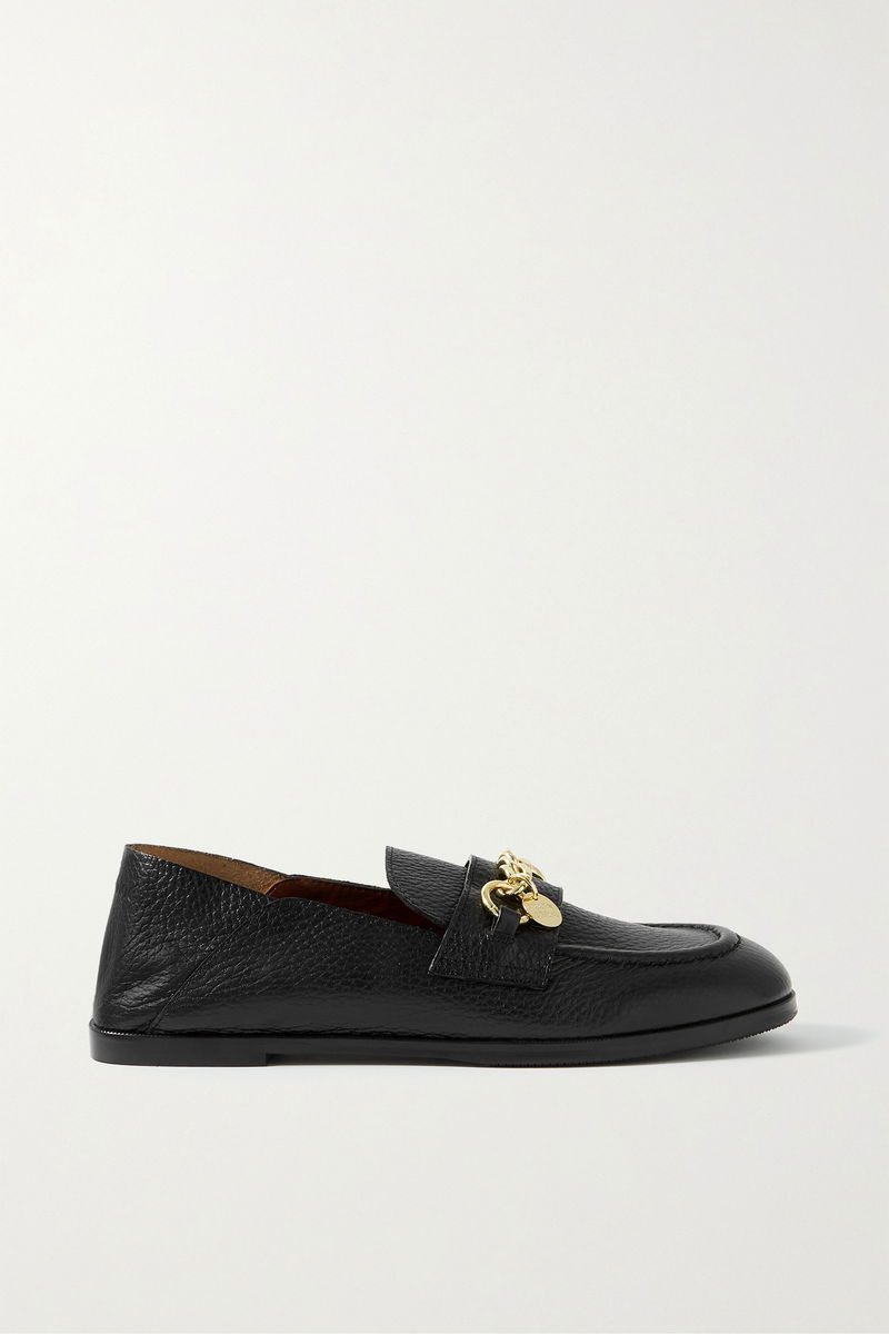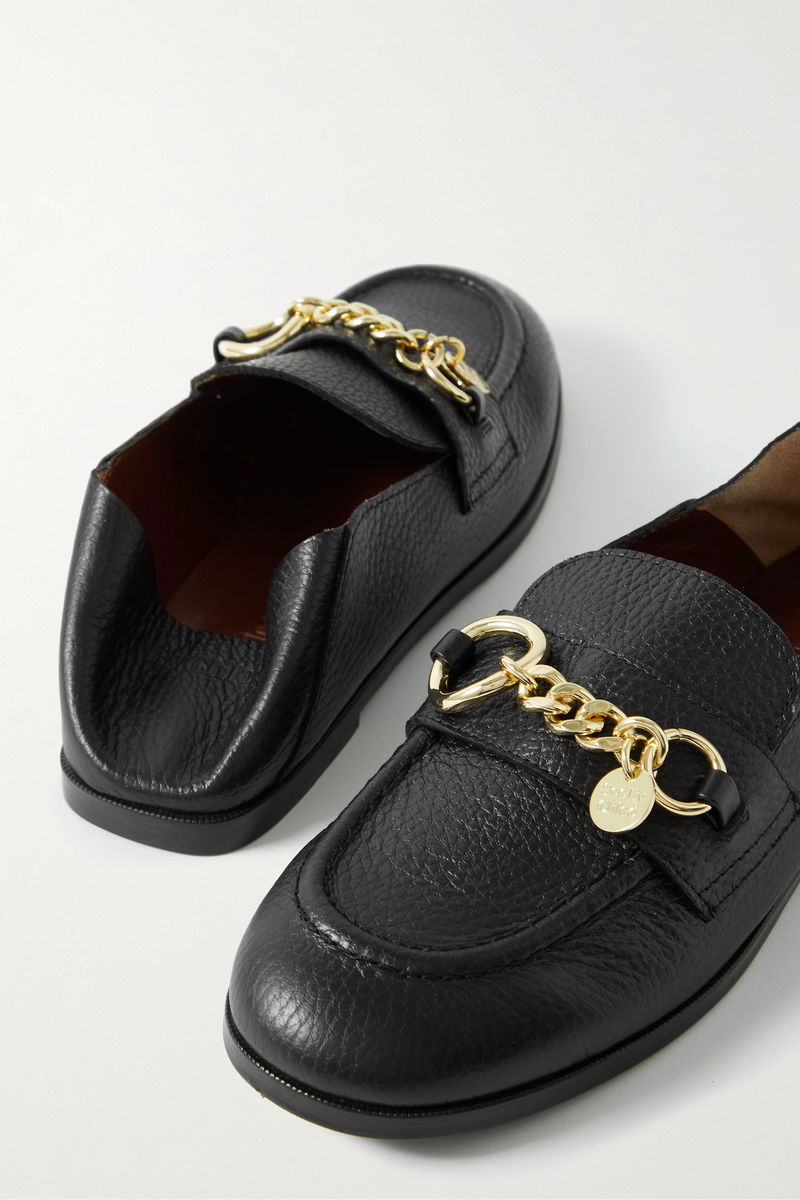 See By Chloé's 'Aryel' loafers are topped with a gleaming gold chain and a pendant etched with the brand's logo. They're made from soft textured-leather and have collapsible-heels, so you can style them two different ways.