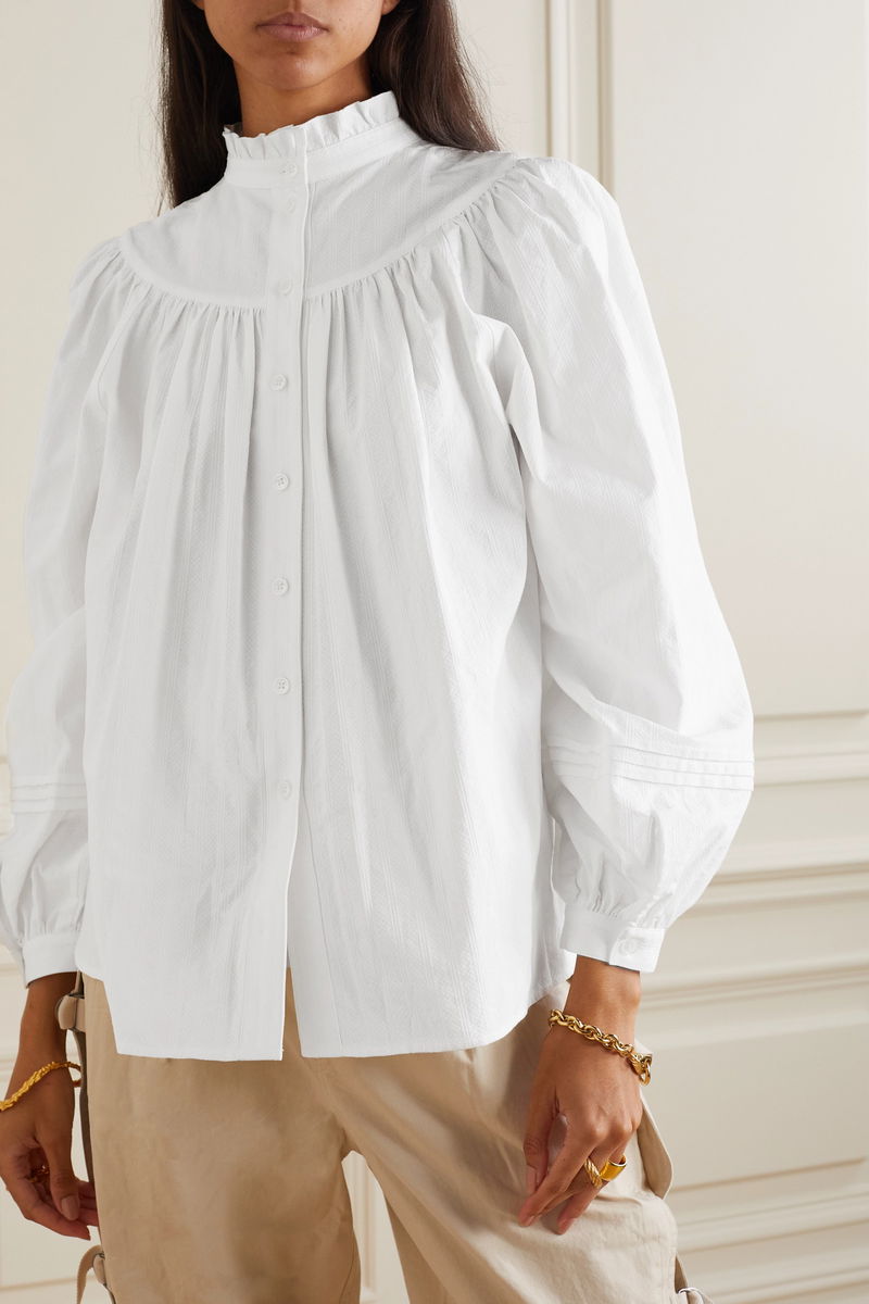 You can always count on See By Chloé to create such pretty and romantic blouses. This one is made from cotton-jacquard that's gathered along the yoke to create volume and detailed with pintucks. The pie-crust collar and pretty broderie anglaise nod to Victoriana.