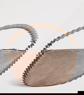 See By Chloé's beige Joan shoulder bag features the label's signature whipstitched O-ring hardware, originally inspired by equestrian tack braiding. It's crafted from smooth leather with a brown suede front flap and a snakeskin-effect cross-body strap creating a tactile nuance.